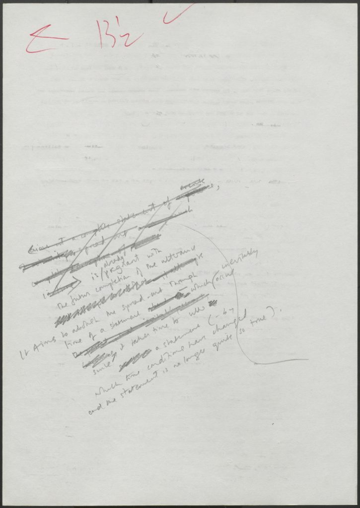 In order to successfully do this, Watson’s novel must explain these complex linguistic ideas to an audience largely unfamiliar with them, in a way that is clearly understandable and interesting. Part of what makes this manuscript so fascinating is that the reader can see how many of these late period edits centre around how the book explains these linguistic ideas. Watson realizes that The Embedding will sink or swim depending on how well it can get across these ideas, many of which will not be intuitive to the average science fiction reader who, in the 1970s at least, one could probably assume would be much more familiar with physics and engineering than linguistics and the social sciences.